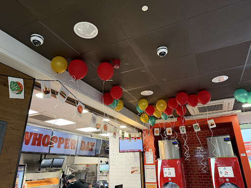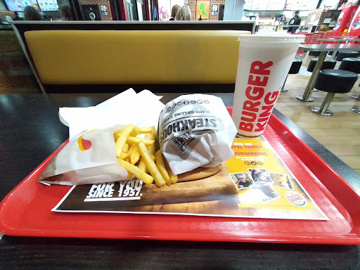 Read moreBurger King as a brand has definitely improved. Great tasting burgers, fresh lettuce and tomatoes and some nice crispy onions. Fresh brioche roll too. The fries did taste like they had been reheated. The fries come unsalted which is good so you can salt to taste. The cold drinks are provided via a coca-cola freestyle machine which gives you usually plenty of choice however the machine advertised a drink which wasn't served in this restaurant and the whole freestyle range wasn't available which was a shame but apart from that, the Coca-Cola tasted good. The restaurant was very quiet for a Thursday at 7pm and staff were standing around by the tills when we came in which was a shame given that the restaurant was dirty. The toilets were dirty with an unpleasant smell and they looked very clinical given the large amount of white. The two sinks had one push tap each which gave out cold water at a dribble and if you used both sinks the dribble was even worse. It was a struggle to wash your hands. Overall, much of an improvement to Burger Kings past poor performance and the...