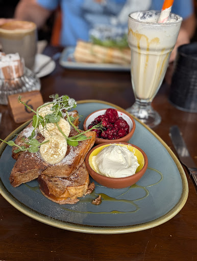 Really nice cafe for breakfast or brunch. Coffee was great. I had the breakfast burrito which was ok but they rolled it in such a way that each ingredient was separated out. So I started with just chilli beef at the start and then had just eggs at the end, not how a burrito should be prepared, you want a bit of everything as you go. My wife had the cinnamon toast which was ok. Menu listed mixed fruits as an ingredient but this was a fresh banana and a berry compost. It was also described as 'dipped in cinnamon sugar' but there was no sign of this. We were expecting something more like you get with a churro, adding a bit of texture.