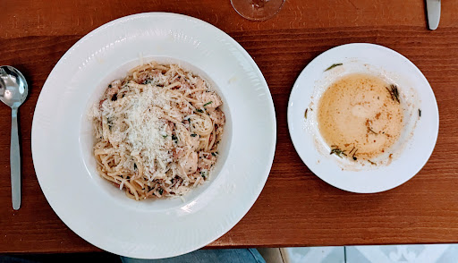 I had the carbonara, which was rich and flavourful but with a thoughtful twist - no heavy cream, which allowed the pancetta and egg to shine. Amazing.