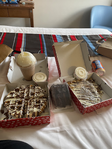 Read moreMe and my friend got the deal for 2 for £20 and I was shocked at how much you get for your money. It included 2 hot desserts, a piece of cake, a milkshake, and a soft drink. They were also doing an offer that when you spend £20 you got a choice of an item for free. We got kinder waffle and kinder crepe, a ferrero milkshake, chocolate cake, and a can of irn bru. All the food was soooooo good and excellent value for money. Only down side was our Tango Ice Blast that we chose for our free item never arrived. I would still recommend this place...