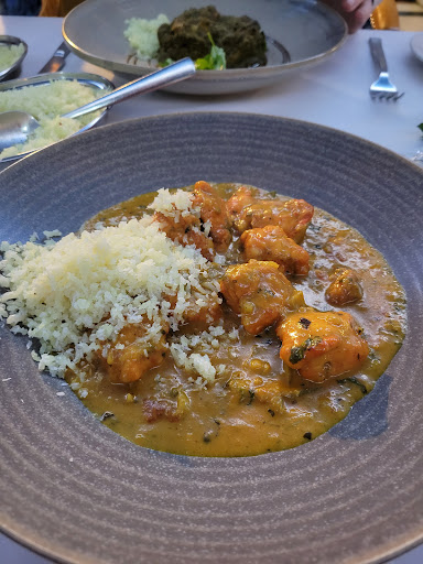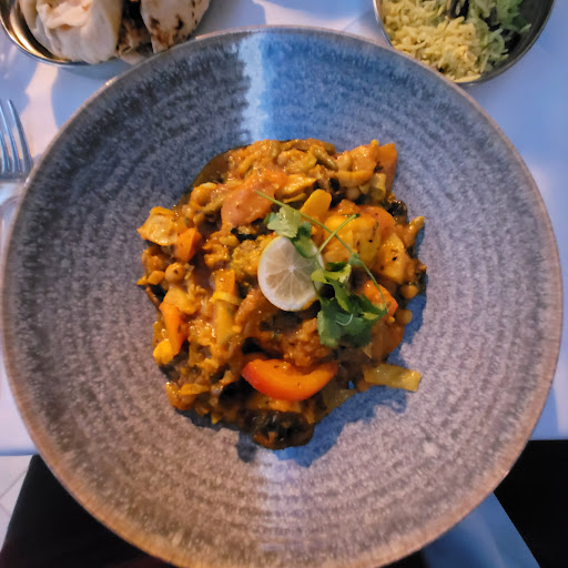 Read moreWas really looking forward to going to this restaurant. I love the art deco period and this restaurant was originally the Carron tea rooms built in the 1930s. There are two entrances, the one that we used, which takes you straight into the dining area, is an open room with large original art deco windows. The other entrance takes you into a beautiful art deco bar area with comfy sofas. The corridor between the bar and restaurant has cleverly been designed as a train (see photos) giving you the experience of travelling on a train in India. This is a great idea but there was no-one sitting there during our visit. Our vegan requests were not an issue and the food was lovely, although the bhuna could have had more spice. It would have been nice to have had another option for non alcoholic drinks such as a cider or bottle of nozecco. Staff were attentive and professional, but could have been more welcoming and would have been nice to get a goodbye when we left the restaurant. Those are the personal touches thar make us want to go back. £45 bill was really good value for money. I read that there was a lot of money spent on restoring the art deco features in the restaurant, and i expected it to have more of a wow factor than in did, but it was lovely to see the mirror rumoured to have been designed by Picasso himself. Hidden behind the boring brown toilet doors are some lovely art deco toilets. Well worth a trip to this restaurant....