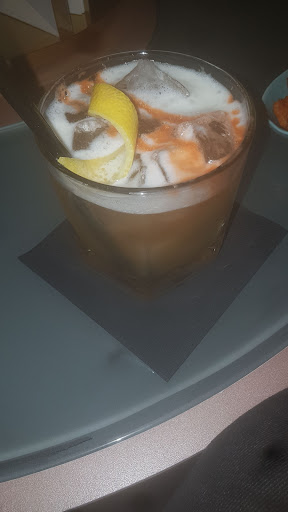 I've never had a drink before that I felt required a piece of literature but here it stands. A Smokey Amaretto Sour in Champayne Central the bar within Glasgow Central Station. When I walked in to the hotel you pass through to get to the bar I was concerned by how unsecured it was for a place within a city central station. Now I'm pretty sure the inevitable has occurred and I died because heaven is the only place this drink could exist. About the drink it's the perfect balance of sweet, smokey and savoury. It looks fantastic, manly, intriguing and is dressed with spice across the top. When I took the photo of it the flash on my phone triggered drawing everyones attention to the fact I was snapping my drink like a instadicted millenial but was I ashamed or embarresed, was I hell.....I was proud! Proud to be seen with this masterpiece gracing the table I sit at and I with it's presence. This is to me what the Bugatti Veyron is to Jeremy Clarkson. You'd expect me to be happy like you would Jeremy repleat with Bugatti but as he famously said he was enjoying the experience so much that he felt mixed emotions of sorrow knowing he'd unlikely drive the car again and couldn't own one, alas I feel the same knowing that the creator and venue for this Scarlett Johanson of cocktails is 450miles away from 'my ends' or as the locals say, where I'm fir. Even moving wouldn't guarentee this particularly skilled barman would remain. After the first sip I simply stared the cocktail down shocked and stunned as though it just grabbed me by the chap, it's brasen but welcome to do as it pleases. Give it up cocktail bars for here on this day cocktail was achieved. We have answered the begging question of many: How do I cocktail? This is how. ...or words to that effect it was...