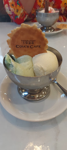 Dropped in for coffee and dessert, it was jumping .... may, paw and the waines clearly love this place. We were met at the door by maitre de whom immediately realising there was no available tables - fetched one from the back stage and set it in a space near the door - while apologising for the odition and lack of room. This guy is on the button and knows how many beans make 5. TmStaff were right there with menus and then after offering yo take a drinks order left us to it .... be warned neither the quality or the quantity here is disappointing - this is not Di Maggio's, nor is the tariff .... Desserts were homemade just like my mama never graced our family table with, they were impressive and satisfying. Think Nardini's on steroids and the service was straight out of Downten Abbey .... is it inexpensive and tacky? No, as I already explained, they offer an Ashton Lane restaurant experience, without affectation or compromise. Visit for the massive steaming hot pizza, the knickerbockerglory, the Italian ice cream (made by a 70 year old man no less), sit back, relax and let Coia' s Cafe Restaurant pamper you. In Glasgow you rarely find an establishment like this anymore, most disappeared with names Wood and Selby's, Pettigrew and Stevens, Paisley's, so bring your parents, the kids, friends, sit, eat, drink, enjoy. 5 upmarket, tasty,...