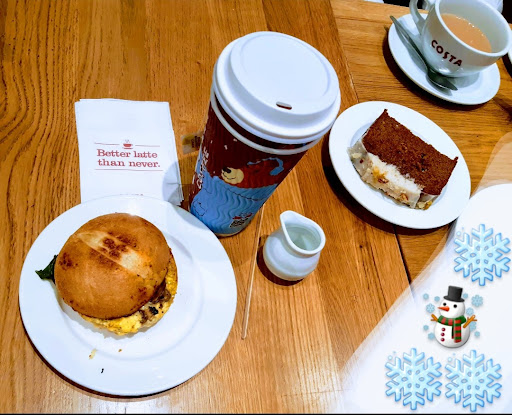 Read moreCosta Coffee situated in the Glasgow Fort is a very welcoming store! The staff couldn't be more helpful & even when extremely busy, they are only to willing to help! This Coffee Shop is a larger store with a good number of washrooms situated to the back to suit everyone's needs. There is the choice of either coffee & a cake, to very tasty snacks, meals & high protein dishes. Vegans, Vegetarians & meat eaters are all catered for! A huge choice of hot & cold drinks are available in either smaller, medium or large sizes. You can sit-in or takeout! Prices are reasonable with the option to collect "Beans." This allows you to enjoy one free drink once you have collected eight beans, which you collect through the Costa App. Gift cards are available instore or online. Disabled access is situated at the main entrance.