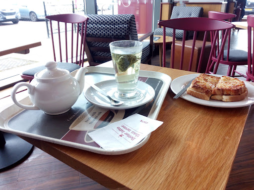 This is a very handy Costa Coffee cafe in Dumbarton. It is on the A82 going west out of Dumbarton towards Loch Lomond. Follow signs for the A82 sign posted Crianlarich and as you head west going out of Dumbarton it is at a roundabout signposted "Services". The Costa Coffee cafe has signage on it saying " drive through " but there is ample seating inside. The Costa Coffee cafe is on the same site as a Premier Inn, fish and chip restaurant, and a petrol station. The petrol station has a Spar shop and inside the shop is a Greggs food outlet and a Subway sandwich shop. At the Costa Coffee cafe I had two cups of Twinnings breakfast tea and glasses of water. The tea was very nice and the cafe is clean and tidy inside and the service was quick and efficient. There are also toilets in the Costa Coffee cafe on the A82 in Dumbarton. I would recommend a visit to the Costa Coffee cafe on the A82...