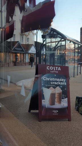 The shop is clean however the outside area was filthy and despite very quite business, no one came to clean the tables. I picked the dishes myself off the table and took them inside, at the same time noticing one person wandering around the shop clearly bored. I waited a very long time to get served and got a poor, not so like Costa quality latte. While waiting for my coffees for 15 mins, again, despite very quiet time, I noticed that 3 customers receiving orders were clearly unhappy with what they got, noting that one girl spilled her lemonade all over herself as the kid wasn't on properly. On my way out I noticed another very unhappy customer with her iced drink who was on the way to return it and complain. The lady who was serving me was trying to learn how to make a simple peach iced tea and still did it wrong despite her colleague explaining her each step of the way. Never been so disappointed with a franchise coffee shop, especially that I've been to many different costa...