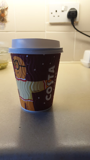 Read moreIt's OK. It's not the coffee that's the problem. If you order a cappuccino you get half a cup of coffee. I don't expect it to be filled to the top but even after the froth is added it is well below the top. The fact that costa is expensive I expect a decent sized coffee. The cakes and food selections are good. Cater for gluten free and vegans. Would be good to see Batista oat milk though. Soy milk is not good and some people can't have...