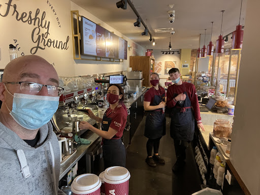 Strategically placed Costa Coffee shop in Clarkston just 25 +/- mins from Glasgow . Clearly a meeting place for many locals though. Sadly it is surrounded by at least 7 charity shops which, although serving a purpose, shows it's lacking a fresh Butchers, a grocery shop and a focused bakery shop as examples. The decline of services for those who really need them. I visited all the charity shops buying some items needed at home. I was truly impressed by the overwhelming friendliness of all I met. Bless you. I'll come back again soon....