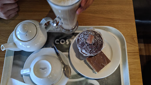 Read moreI remember one of the first costa coffee bars at Central Station in Glasgow, (Perhaps the first ),where you would meet yer mates under the clock at central station and have a coffee. At that time it was quite the thing for the fashionista barista coffeez aficionados. The Costa explosion Definitely rivals Starbucks and having sampled their toasted croissants and Flat white, I felt a comparison would be interesting. The service was excellent, very quick and very polite. Obviously they have been well trained ..perhaps certain American burger joints could learn from this process. I had toasted roll with sausages. My guess yesterday’s rolls get toasted. The sausage links were decent and the coffee ( flat white)was also decent.I think a blend of arabica and robusta. Costa has a smoother taste than Starbucks and the burnt-bean theory, which is more palatable although I prefer the Starbucks coffee.However Costa was roughly £1.50 cheaper than Starbucks. Over £7 for a coffee and a rechauffe bun is pricey. With so many artisan coffee places in Glasgow yer dot dash would be better spent there unless...