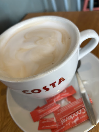 Read moreCalled in for a coffee with 2 relatives. Only 1 table was occupied, the rest were empty but the tables were stacked with dirty dishes waiting to be cleared. I had to clear our table for my elderly mother to sit down. No staff offered to sanitise our table. Our drinks were good, usual Costa standard. Just a shame it took nearly half an hour for staff to clear the dirty tables, instead of chatting to each other with an empty shop. Staff however, were pleasant...
