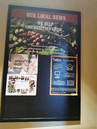 Never experienced a Costa like this. The cafe was swarming with flies which were trying to land on customers' food, covering the LCD menu screens, and crawling all over the cakes, muffins, etc, in the cake cabinet. There were so many that had this been someone's house, I would've been concerned that there had been an unattended death. In view of this, my husband and I opted for a coffee and a hot sandwich each since the sandwiches were in wrappers where the flies couldn't touch them. Though friendly and polite enough, the barista was lacking in hygiene skills as when he splattered coffee all up the machine while making it, he only gave it a vague wipe over with a visibly soiled rag, leaving the machine still mostly covered. The now-warmed sandwiches arrived first and we had to swat away flies from them until he brought over the drinks, at which point he rested his wrist on my sandwich (leaving a large indentation) to put one of the coffees on the tray.