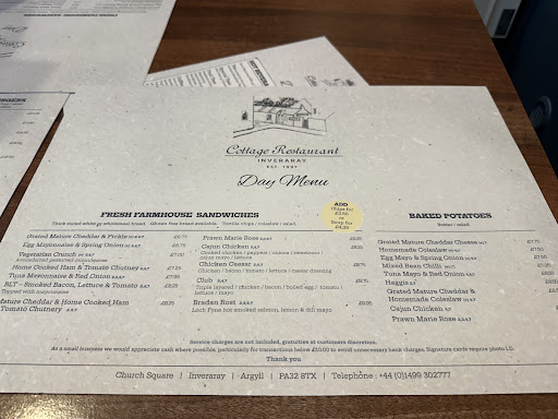 Arrived in Inveraray just after 5pm at the end of an afternoon drive from Loch Lomond. We were looking for a casual dinner somewhere - noticed the cottage restaurant as we were walking towards the George Hotel. Sign on door advised it would re open at 5.30pm so after reading the menu called number provided to check if we could book a table for opening time - woman on phone was so pleasant and accommodating. Came out to greet us 5 minutes later. Myself and my husband were so impressed by the freshness of the food and the value for money. We had delicious salads and our 2 kids had chicken nuggets which were clearly homemade using proper chicken breast meat. We each had desserts and were able to take coffees away for the drive home. It was such a hidden gem of a place with a nice relaxed atmosphere. The lady serving in the restaurant was so friendly, kind and thoughtful. She engaged with each table and gave any useful advice she could to help improve their stay in the region. We couldn't have had a nicer evening and will now always come here whenever we're...