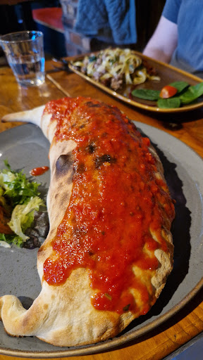CALZONE CLASSICO (Ā£13.50) - Folded pizza filled with mozzarella, salami, ham, mushrooms and a touch of tomato sauce. This is ginormous and I feel it would be what a pizza would look like if it was a hug! Deep filled with all the best ingredients and plenty of cheese.