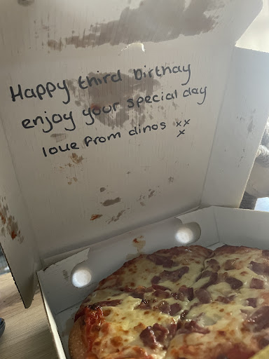 Read moreWe ordered from Dinos last week for the first time ever, had a pizza which was absolutely amazing, and I’m not usually a fan of Pizza. We don’t normally get a takeout every week but ordered again today and ordered mixed chicken and lamb shish kebab. OMG. It was best kebab I have ever eaten, meat was juicy and plentiful. Loads of vegetables too. Delivery was quicker than expected and value was really good. Will definitely order again and 100%...
