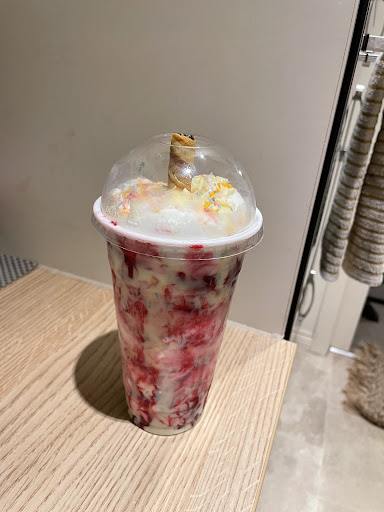 Went around 9pm on a Wednesday night, and we were the only people in the shop. It was quiet and looked like it had been for a while and there was a lady sitting down behind the counter even though there was rubbish and an empty ice cream tub which could have been cleared when it was quiet. I ordered a Kinder Shake, which on the menu was 5.95, which is more on the expensive side for a milkshake but they did only come in one large size. When paying I asked how much and the lady told me it would be 6.35! Did not indicate to me that the price was different from what was displayed. Then a man came over who then informed me that prices had risen and offered to put it down to ÂŁ6 which was fine. I waited around 5 minutes for the shake which was good. I then got my shake and left. There was a very thin layer of whipped cream on top and some on the lid which I thought was a strange choice. I then tried the shake which was completely melted and was barely cold. Disappointing as you could go to Sprinkles in Renfrew and get a bigger shake with more cream and much colder and it would still be cheaper! This place has so much potential and the decor was nice but rubbish lying when it's quiet and the issue with the prices...