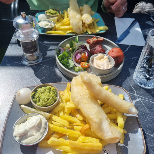 After reading decent reviews, sadly and disappointingly our dining experience didn't live up to the print!! Despite my dog having an assistance dog harness, I was told only guide dogs were admitted inside. This is not the case, it's actually any working dog for any disability and law which applies to Scotland, England and Wales. As the restaurant was busy, I didn't want to create a scene and argue my case, also my husband was crabbit and hungry so I just went along with being seated outside in the small dining area. After ordering, we kind of regretted the decision as it was rather cold and not the best environment to enjoy a meal. However, the worst was yet to come!!! It just hit rock bottom when our food arrived. The whitest colour battered fish I've ever seen in my life, think it could have done with an extra 10 minutes to be honest, the consistency inside was gungy and resembled a mucus like substance. And the chips? Resembling McDonald's fries were the driest and hardest excuses for chips on the plate. I actually couldn't eat the fish, the state of the batter made me nauseous but I'm sure the birds enjoyed it. Extremely disappointing and suffice to say, I don't recommend nor will we return. Note: I'd usually speak up regarding the food but my husband goes in a mood for hours if I...