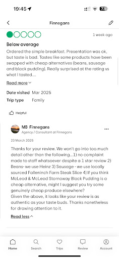 Now what was wrong with my lovely tasting breakfast❓ It was served up on a cold plate 🍽️ & my beans were only warm, but other than that it all tasted very good. The tattie scone wasn't all soggy or even burnt on one side that has happened to me elsewhere - including cold plates & my fried egg🍳 wasn't even frizled up, it was spot on & I will pop in again & taste their special...