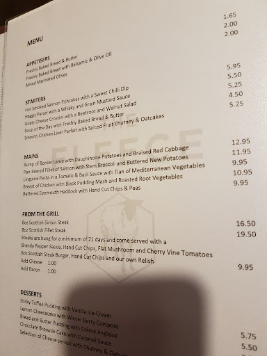 Read moreReally really good dinner my wife ,kids and myself just had at the Fleece. Selkirk is so lucky to have a place where you can eat out thats so welcoming and with amazing food. I am not joking when i say that the sirloin steak is as good as you will get anywhere in the borders. If you haven't visited the Fleece i highly recommend it. Everytime i have eaten here its been top class with a really friendly atmosphere. Its a family run business that truly deserves support because the efforts they have put in to get it to the standard that its at. Will definitely be back. 10 out of 10 and well done to all involved. Keep up...