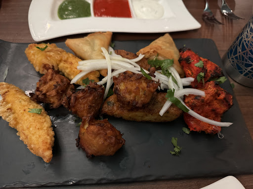 Ā Ā Ā Read moreWe ate here on Friday 28 March . We ordered chicken and vegetable pakora which promptly arrived in a nice dish with 3 individual spaces for sauces. The sauces themselves seemed to imitate the flag of India, red white and green. The pakora was ok, not the best Iāve eaten but the sauces were a bit of a letdown, each being a little milder than the one before. I think they were mint, raita and unknown, probably a chillie concoction but as I say very mild. When I go to an Indian restaurant I expect a bit of bite to the meals, so far none. To compensate I ordered the spicy tikka masala instead of just tikka masala for my main course. I would have ordered the Madras but previous experiences have made me wary of having too much of a good thing. Anyway, the food arrived including my wifeās chicken Bhuna. Donāt get me wrong, the food was well prepared and tasted delicious but once again I was underwhelmed with the amount of spicing. My first thought was that this was prepared for European palates. In my time Iāve eaten some Indian food that almost made you recoil from the heat but were addictive in that you had to go back for more. No such issues here. Mind you Iāve eaten Indian food in Asia, Europe, the Middle East and America since the 1970s and the best Iāve ever had was surprisingly in Majorca. Whoād have...