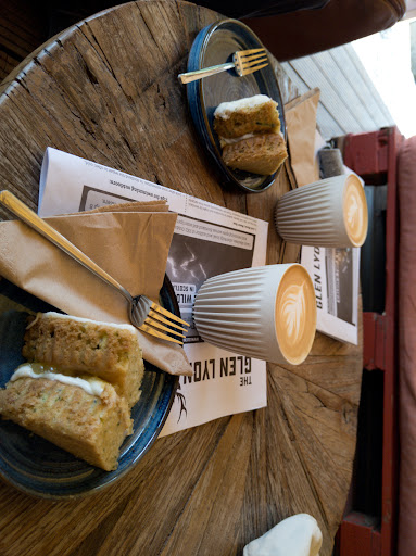Having thoroughly enjoyed a walk through the Birks of Aberfeldy we looked forward to a decent refreshment nearby. Imagine my delight when I realised that I could smell roasting coffee beans. We followed the scent to GlenLyon Coffee roasting house on the skirts of Aberfeldy. A wee oasis. Very welcoming and friendly. Plenty of outdoor seating covered in the style of a Yurt. Beautifully crafted wood with canvas. There was of course hand sanitiser available and Covid rules were clearly stated. The team were friendly, helpful and knowledgeable. (I love my coffee so that counts). I ordered and paid for latte, (phone or card payment ok) and within a few minutes coffee was delivered. It looked good, smelled better and tasted great at a very reasonable price too. I sat outside and thoroughly enjoyed the view to the hills. Ok there are some buildings in the way but you can still enjoy the tops of the hills. The atmosphere in the cafe was great. There were musical instruments which were available to play, ( in non covid times) and the piped music was first class. Not too loud, but loud enough to be enjoyed.