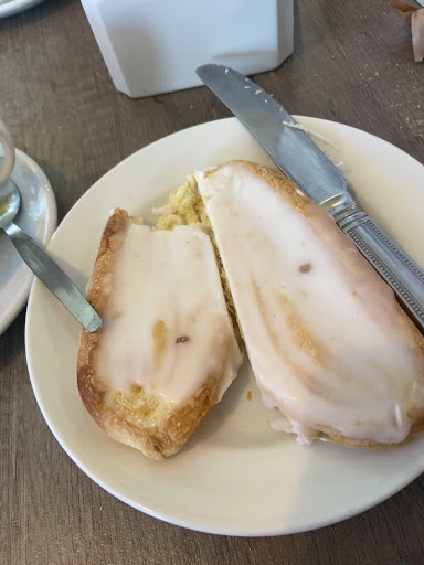 My girlfriend and I went into the bakery for a simple baked good at first, the smell was inviting and the goods enticing. But after buying our goods, and then seeing the cafe co-joined with the bakery, we went to sit down. Understandably they said we could not sit with our baked goods as there is a charger for sitting. So we asked if we were able to buy something in the cafe, which we did. Although we had drinks we bought Apple juice after a long walk so we could sit. We enjoyed out bakery goods and drank our Apple juice. But when we came to pay we were shocked when they told us that because we ate the cakes we bought in the bakery that you have to walk to to get to the co-joined cafe with our juice, where they sell a few of the bakery goods too like what we bought, they said that we would be charged for the juice, the cakes and then a sitting down fee. In a rush for our train, we had to pay for cakes that we did not eat. We would have happily paid the sitting fee and the juice but not for extra cakes! So before you go, is it worth the hassle? And the unfriendly staff? And the lack of information about extra costs...