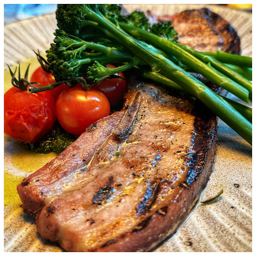 Secondly, the food left a lot to be desired. I mean a whole lot. They're trying way too hard to impress with the visuals and not concentrating on making tasty food. They have a "sourdough" bread app option that in no way, shape, or form could be considered a sourdough. It was a big roll of plain flour and water baked bread. My bone-in pork chop was a half-inch (if even) slice of pork that by weight was more gristle and fat than edible meat. Being thin, meant overcooked too. Had to ask for a steak knife just to saw through it. Lacked any kind of seasoning at all. I ordered a side of fries that was not delivered until after I asked about it and after I was almost finished with my meal. My wife ordered the sea bass which consisted of two tiny pieces of fish flesh that maybe if put together was the size of an iPhone 3 and less thick. She said the flavor was okay, but dry, and not nearly enough protein to make it worth the effort. She's a small portion eater to begin with and I usually finish off her plate, but this time the portions were so minimal that she pretty much ate all my fries and polished off the bread just to satisfy her hunger.
