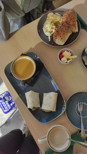 Read moreI had the vegan falafel and hummus wrap with a cup of yellow pea lentil soup. My friend had the chicken sweetcorn mayo. Everything was fresh and delicious. I wish they made fresh cooked chips. Otherwise the cafe is beautiful very spacious and clean and the staff are very friendly great parking. We also had two lattes and two mini fruit bowls for our kids. Total cost £23.90. I rarely go out to eat in cafes, so I'm not sure if it's good value for money compared to other cafes. Nevertheless, it was reasonable price in my opinion. I just wish my falafel wrap was a...
