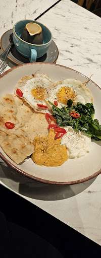 When it arrived, the "Flat White" was more like a Latte. Large in an oversized tea cup with tons of overly hot milk and the thinnest layer of crema/foam on top. If I am brutally honest it wasn't even that nice.