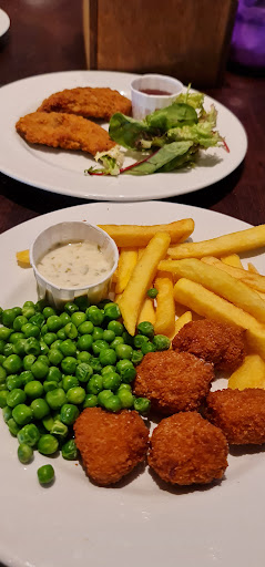 Thought I would try here for a change with my mum and children. It was lovely outside so we wanted to sit near the front but away from the smokers outside, We picket a table which was behind a partition and you can still see outside. As we went to sit the man from behind the bar shouted "can you find another table they're dirty" (It only needed a wipe!) So we found a table at the back Order our meals at the bar sat back down, When the meals came out I was a bit disappointed that with mine and my mums we orded the 2 course for £6.99 my mum got 2 chicken strip with lettuce and Scampi chips and loads of peas. (only 5 bits of scampi) I ordered the scampi too (5 bits again) and I got the pudding, the custard was nice. my son got ice cream but I have to go and ask for them as we waited 25-30 mins after finishing our mains my son was getting restless. My only issue was the guy behind the bar shouting over to us about the table (my child has additional needs and something like that could upset him) He could have let us sit down and came over and wiped it down. The amount of scampi and the wait...