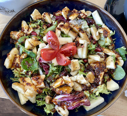 A Halloumi salad was an even sized cut of flavours, balsamic, pomegranate seeds & Chai seeds. Side order of chips was a big bowl of crispy & hot skinny fries.