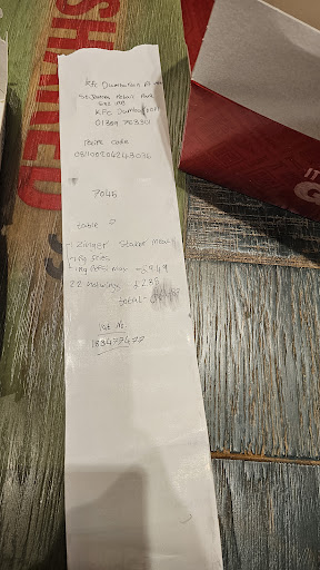 Read moreMe and my family travel for many hours, so we thought let stop for KFC and take some food with us because is dinner time. I ordered everything separately so we could split and give everyone what they order. Staff put everything into 1 bucket mix all our food. I went back and ask to change it because that not what I ordered. Staff at the beginning refused that saying that’s what they do when they see many of different chickens and it is easier for them to put into 1 bucket then pack everything separately! My fries also had a pepper and salt on it but they shouldn’t. The member of staff who had red spots on this body was rude! I guess he called a menager/team leader (a skinny man with black beard ) was just looking at me and adding extra comments. At the end they start speaking Scottish so I cannot understand, that was unnecessary.Also, the restaurant is absolutely dirty, a lot of papier lying on the floor, the tables were not wiped. Really bad customer service. I have never experienced such bad customer service in my life. This place should be close down or they definitely...