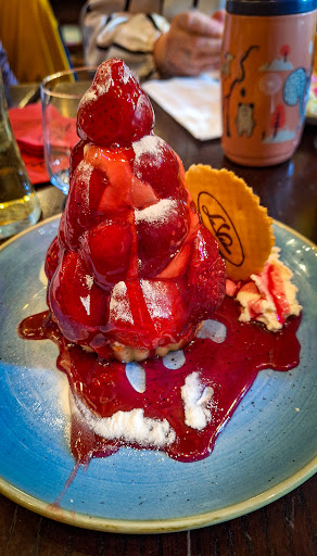 We had great difficulty flagging down staff who were clearly overwhelmed by how busy the restaurant was. When our main course plates were cleared, we were not asked if we wanted dessert or more drinks, despite having empty glasses. We finally managed to catch someone's attention just before 7pm to ask to order dessert. The man who looked over gestured to us asking if we wanted the bill. My friend picked up the drinks menu and said we want to order drinks and dessert. We were then told, rudely, that there was no time for dessert and they need the table back for 7pm.