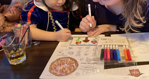 Separate booths by the window allow for fairly good distancing. Nice clean bathroom. Given an activity sheet and crayons that made the meal fun for kids. Able to select their meal from the activity sheet then draw and put toppings on their picture of a pizza among other things. The coffee was very good, I had two cappuccinos. The wee ones pepperoni pizza looked nice. I was hoping to pick something relatively small and healthy and most of the options are understandably pizza or pasta, but my minestrone soup was quite nice. My friend enjoyed her macaroni, though I prefer the traditional cheesy type rather than the creamy kind with additional ingredients they have. No cocktails during lockdown but on a past visit had a couple and were good. Service was friendly and they didn’t rush us at all. Ideal for a fun family meal.