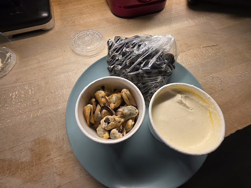 Read moreFirst time I had been in on Sunday at 2.30pm, they weren’t doing sit ins which is fair enough. I was disappointed in the mussels although they where tasty, I had 12 empty shells in the bag and I understand your going to get empty ones but 12 in a large bag which isn’t very big anyway is disappointing. The lady was very nice but I think you should be checking what you’re putting into the bags to prevent this. I would like to try to sit in so hasn’t put me off but I wouldn’t buy a takeaway bag again because of these reasons. I would like to think if your sitting in them more attention to detail...