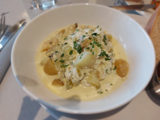 The only nice thing on the seafood plate were the scallops (so I am sure a scallop starter would be quite lovely). The crab and langoustines were overcooked and Bland. They kindly served bread but there were no juices / garlic&butter or oil to slather up as the crab and langoustines just seemed to be boiled with no further love. My partner only tried the steak and left the rest on the plate as it was overcooked and the meat quality just wasn't up to par (really unusual, as the local meat in shops and restaurants has been a delight). But the lovely waitress saw the barely touched steak and comped the dish. The service and staff were really excellent, shame about the food.