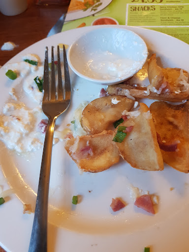 The potatoes weren't fresh. They were reheated and greasy- old and brown looking. The dip that came with it was watery and tasteless and the potatoes were all congealed together.
