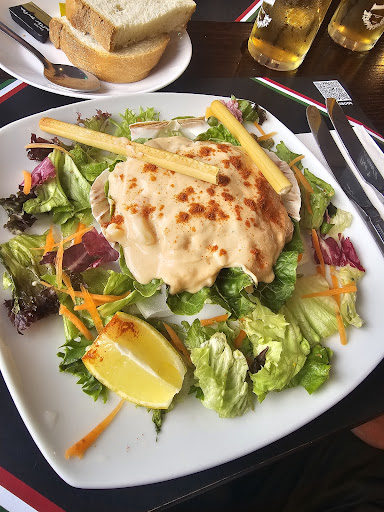 I was driving so I had a soft drink but my partner decided to try a cocktail and he was delighted with it. As starter we ordered a sharing plate with a selection of meats and olives, as main course my partner decided to have ravioli and I ordered the fried stuffed mushrooms which were phenomenal. The food was fresh and portions were generous. We closed the meal with a tiramisu as I was feeling too full to have a dessert all by myself but we really wanted to try it as the menu says homemade so we were curious to try their version. Well not disappointed at all, the tiramisu was fresh, the taste of the coffee was very well balanced with the rest of the ingredients, just perfect.