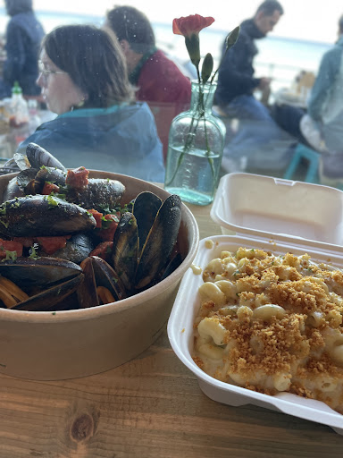 I never had eat with anxiety like in this place,first i couldnt Booking in person,they said i have to book online,later i Saw how people was Booking in person in front of me,so i dont understand It,when i arrived they told me that my table was one with a person already sitting,i asked her if is a mistake? She said " im sure this lady doesnt bother u sit with her,!!!! So i booked a table i should share with a person i dont know!,the lady lisened her and she felt pressure to go,so she was nice and said im leaving anyway,then i took my sit,i didnt want a table outside when i ordered,but i was imagined i can choose,but nope,i didnt want eat with miggies and i thanks for they move me inside,but she told me ill have just 45 minutes becouse already its booked,so for me was fine,by my sorprise just 5 minutes after my food arrived,the owner without ask me,she took my tablet,and things and move to another place,i was shocking,bcouse she could said,please could u move here? And of course i Will,but take my things without ask me,i eating with anxiety,waitress never asked me for a drink,she just give me water,i wished order a drink,but to busy to ask and i feel i wasnt welcome in every question i asked,bcouse they was busy,but that is not my fault,nobody told me i can bring my own wine,i like eat sea food with wine not with wáter,they expect customers knows It!owner asked me if a finish,like telling me indirecting you have to leave i need a table,scared to asked for a coffee,as nobody offered me,i wished eating relax no rush.the size of the soup was ridicolous,the coffee was nice,and the mussels,but also small for the price.they shouldnt offer sitting outside with miggies i could see people wasnt enjoying the meal,there is options for miggies,speacial umbrella and other kind of things,i thinks they should take orders in person and people can ask,if some plate are fresh or some alergies questions,or about the wine,or any questions,yes in the website you can ask but IS just not nice to treat customers just like numbers.i think is nice to take way but not for stay waitress should be more profesional also and dont make u unconfort the customers...