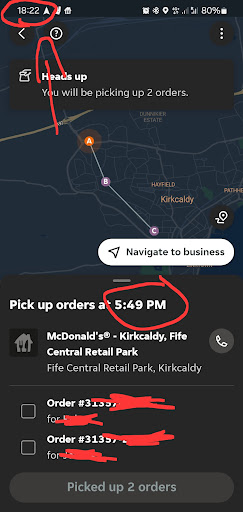 Got a double order (the pay is ÂŁ6.20 and I cover fuel, car maintenance and insurance) from this f.... place again at 5.35 PM (double order meaning two deliveries because Just Eat is a greedy company and now wants us self employed couriers do double the job for half the pay), just eat app said my double order would be ready at 5.49pm (aye right...).