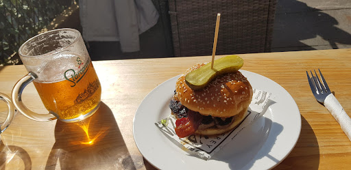 I had a pint of staropramen and a blue burger. The pint was good, not cold, but still very pleasant... to be honest it barely touched the sides.