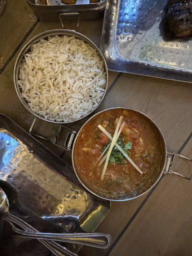 The food.... We ordered a chicken curry wasn't the best not hot served in a small tiny tiffin tin , 3/10 Fried kerman chicken 4/10 Basmati rice 🍚 can be done better and served hot .5/10 Tadka daal was nice and simple . The spice level is very low and can be done better to serve with some condiments like some carrots or cucumbers or pickle of some sort . Overall it was an okay for dinner but not the best. The drinks were good the mango tonic and sherbet was ok The watermelon chaat Was okay the tamarind tasted good the watermelon tasted off and the crushed pastry would be better if used crispy. We waited another 15 minutes to pay thr bill. Our serving lady brought the bill and walked away and we waited again 20 minutes before she was back , attended another table and then back to us and finally we paid and left . Food taste and spices can do better . Serving the meal hot would add...