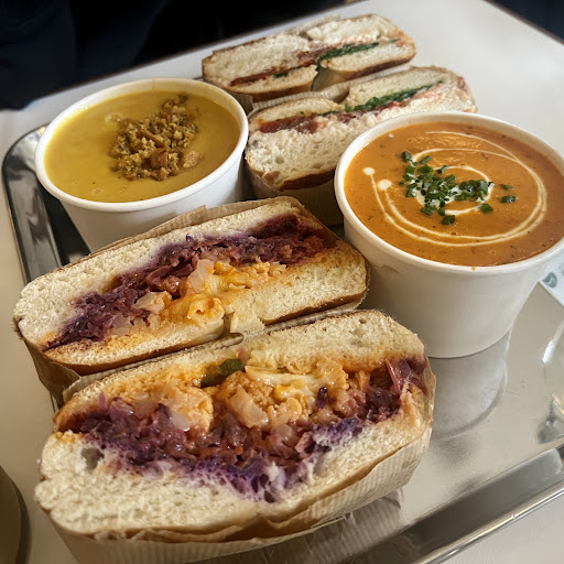 We both opted for soup and shared a bagel â simple, comforting, and exactly what we wanted on a bitter cold-winded day. I had the sweet potato, lentil and coconut soup, which there are no words to decribe how good it was. We opted to take the staff member's recommendation and went for the one with the mortadella in it. This was equally delicious, perfectly complimented with both the style of bagel and the mayo and not too rich. My wife chose the lemon chicken and orzo soup (luckily before it sold out!) which was full of flavor, accompanied by a soft, chewy and fresh slab of focaccia. It was the kind of satisfaction you only get from homemade food, prepared with proper passion.
