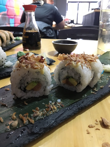 Read moreThis has been rather disappointing visit coming with high expectations after reading the reviews.. 😞 We must have been unlucky to come when the kitchen was unable to work well because food took so long to arrive. The lady said there are two guys who however don't speak to each other and offered some crackers (which she scooped with her hand without washing it a single times!!) 😭😵 we ordered some edamame when we arrived because we were starving and it arrived as the LAST dish. Sushi rolls were full of rice and hardly any salmon. Please tell your chef that double layer of rice really is NOT cool! California roll came with a seafood stick inside!! That doesn't even includes crab. 🙏🏻 Buns were another disappointment - they were half dried/stale and half soggy from the bucket of sauce they sat in. Also salmon and pork buns had exactly same garnish that totally overpowered the protein. Although with the pork it was probably a intention as the meat wasn't cooked properly and was hard to chew. Miso soup was ok but you'd probably get very similar from a package from supermarket.. Seaweed salad was probably the worst one I've ever had - poor texture and sweet was the main flavour.. Decor was interesting and together with the music looked like what I imagine Japanese underground be like. 😃 love Japanese food but won't be...