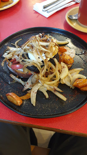 Read moreVery cosy place, staff were super friendly. Interior interesting with various kinds of seats- my seat was a rocking chair! We had the lentil soup bowl with bread (very warming, thick soup and the bread was of good quality) and the Bacon cheeseburger and fries (fries were perfectly seasoned with cajun/paprika? unsure but was delicious). The cakes looked really nice as well, with interesting selections- such as blueberry cheesecake brownie and caramac blondies, but we were too full to try. There may be parking up front, but as it is a small town and that is the only street with lots of shops, I would say assume the places upfront are taken. There is a supermarket just a few buildings before the cafe, where you can pay 2 pounds for parking. Highly recommend...