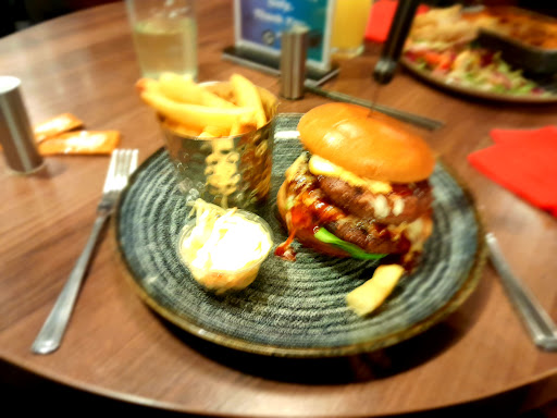 Place looked nice from the outside so wr jumped in for a quick bite to eat. Oh boy was that a mistake! Got seated and they took our drinks order as normal, then around 2 mins after the food order. We had ordered 1 small steak and a kids burger for my son. We then waited 45 mins until the food came out with no-one giving us an update. Eventually the food came, burger looked OK but the steak was horrific, especially for the price! It was served on a salad bowl which is just weird but what got me was the fact that I ordered it rare, was wall to wall grey inside with absolutely no char on the outside at all either. The sides were all undercooked too, the chips were the same as you find in any frozen section of a supermarket. These, the onion rings and the tomato were threatened with heat before it got sent out with the onions being raw in the middle of the onion rings and the batter looking whiter than casper if he joined the kkk. The tomato was the same, not even a single grill mark, it looked like it was thrown in the microwave the way it was warmish in the middle and had no colour on the outside. All in all I wouldn't be back, if its this poor on a Thursday night I shudder to think how bad it is when there's more than 17 (I had time to count) customers in...