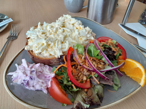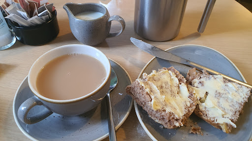This was my first time having lunch here. It was good quality produce. But, it was odd at around 12 they'd already run out of sultana scones, offering rock buns as alternatives "as they're pretty much the same, just a bit sweeter." I had a cheese and ham salad, which is sold as a ploughman's lunch. It comes with a choice of cheddar, ham or brie (you can have 2 of the 3, that was made VERY clear by the person taking the order). The menu did not list it includes a salad or calesalaw, which isn't really a ploughman's lunch). I only opted for this as only open sandwiches were on the menu, but I noticed other customers got sandwiches. At no point were we asked if everything was okay with our food or if we wanted anything else. Nor were we offered water for our dog, yet every other table received these questions where appropriate. I think I'll still to tea and cake if I'm here again (this has been my previous...