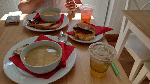 My husband and I seldom go out so when we do it’s a right treat. We dropped in just before 13.00 and ordered 2 cauliflower broccoli soups and found a table for two. The soup arrived, piping hot in good sized portions with a slice of brown bread and butter. I’m on a keto diet so I gave my husband my bread to hid delight. The soup was delicious. Now I have cooked in the uk and abroad and am a bit fussy about my food so when I say it was delicious I mean really delicious. The lady who served us was helpful polite and had a beautiful smile. Altogether a great experience and the first time I’ve had anything in the cafe since it was Slottis so that’s a while ago. Well done keep up...