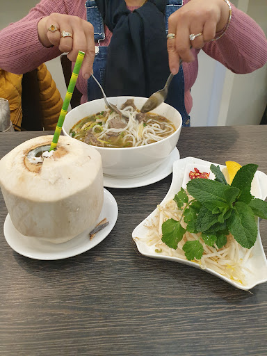 First time here and will be back! I'm new to Vietnamese food and this seemed a great place to try something new in this bright, clean, casual cafe-style eaterie inside the St. Enoch centre. Me and my friend both ordered Pho as this is obviously the iconic Vietnamese dish to try - my friend went for chicken and I chose rare beef - and we each took a spring roll on the side. When our food came, the spring rolls were crunchy, crisp and fresh with plenty of tasty ingredients stuffed inside; but the Pho was absolutely the star of the show, the flavourful and rich broth was bursting with crunchy veg, rice noodles, and oodles of tender meat, and in addition to this we were brought a wee tray of trimmings to allow us to customise the broth to our own taste, with fresh chillis, bean sprouts, lemon wedges, mint leaves, while a fiery red chilli paste, srirarka and hoisin sauces were also available on the table. Yummy! Everything was impeccably cooked, colourful, full of flavour and the lady serving us was really helpful with us making our selections....
