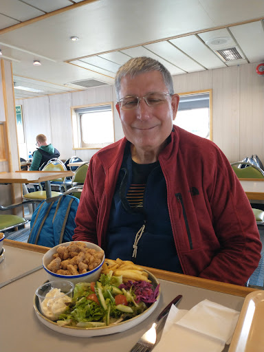 i could not believe it: a cafeteria on a ferry that served incredibly good food! On the way to the Isle of Lewis & Harris, we had the CalMac & Cheese - rich, creamy, flavourful; the fish and chips, as good as any we had eaten in chippies along the coast; a savoury steak pie with lovely pastry. On the way back, the husband ordered calamari, and it was the best ever. The calamari was sweet and so tender it was almost melt-in-your-mouth. Wow, i wish i had ordered it too. The staff was friendly, efficient and cheerful. On the return cruise to the mainland, one of the ladies remembered me, greeting like a friend. Way...