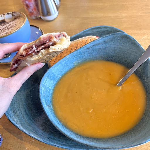 Read moreReally good to see a new, family run business thriving and with ideas to expand... Excellent soup, coffee and cakes, next time we visit we need to make time for the other food choices. We liked the mix of seating: chairs and tables also arm chairs and sofas, upstairs too. Casual atmosphere and a great place to relax. Lots of good ideas here, from the origanal local art for sale, book sales and a book exchange (bring one take one away) to the family friendly area for little ones to play. A good place to go and hang out, especially if the weather...